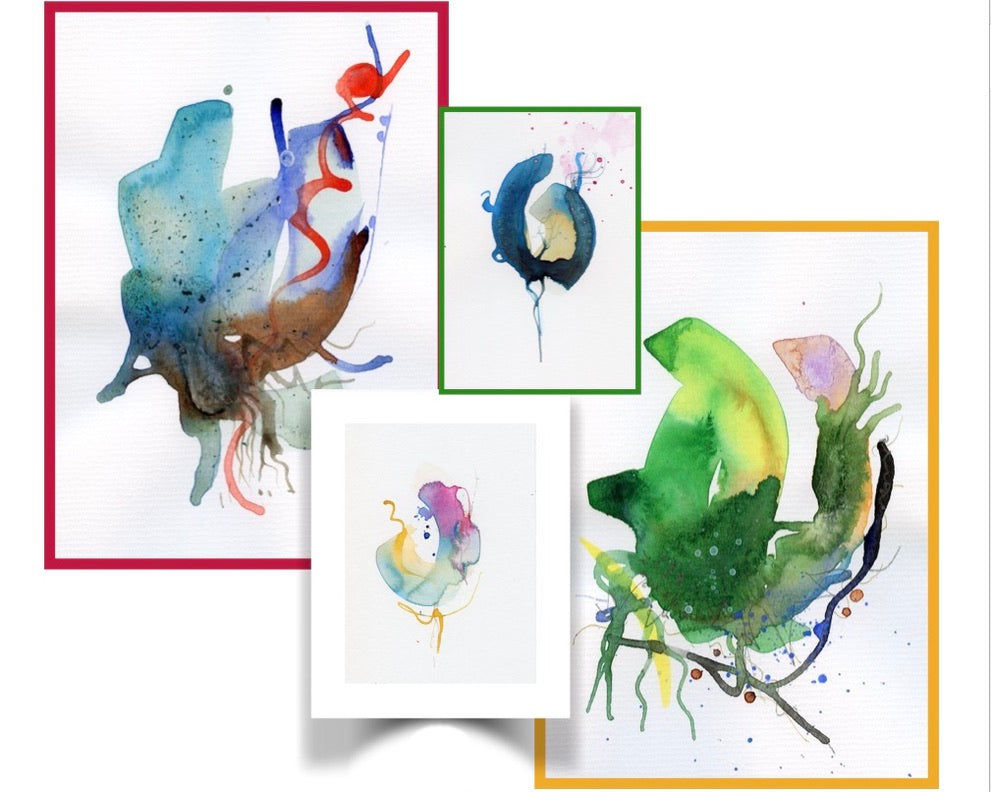 The next really significant moment came in early 2023 when I again returned to watercolours, in my now growing ateljé space in our home in the countryside, and started, seemingly out of the blue, to make tulip like abstract art cards. This intuitive step exploded over the next few months and resulted in the Bloom Being Collection you see here today.