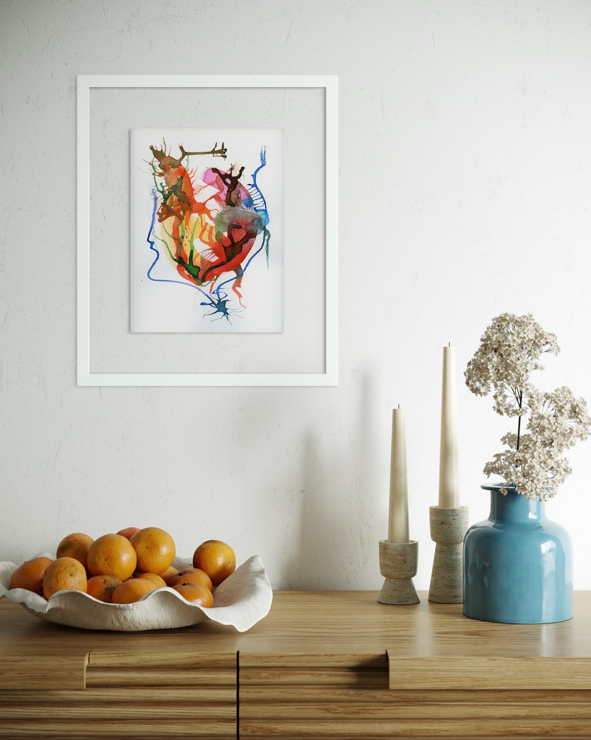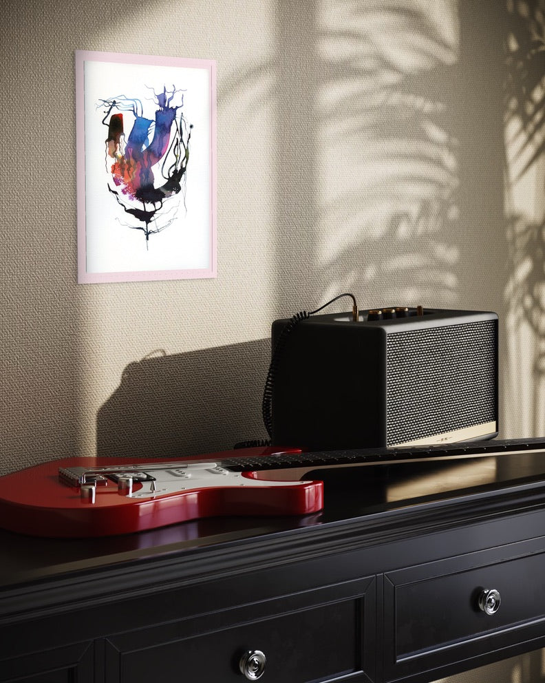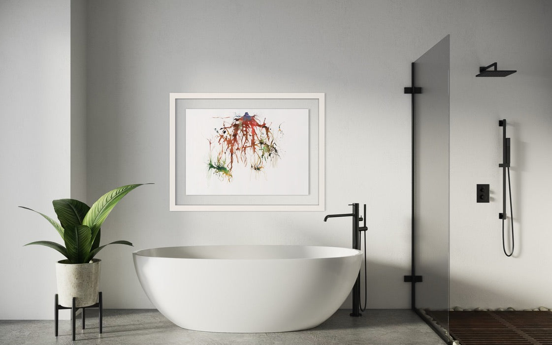 It is best to frame the art work in UV protection frame as soon as possible for preservation of colour and keep it out of direct sunlight.