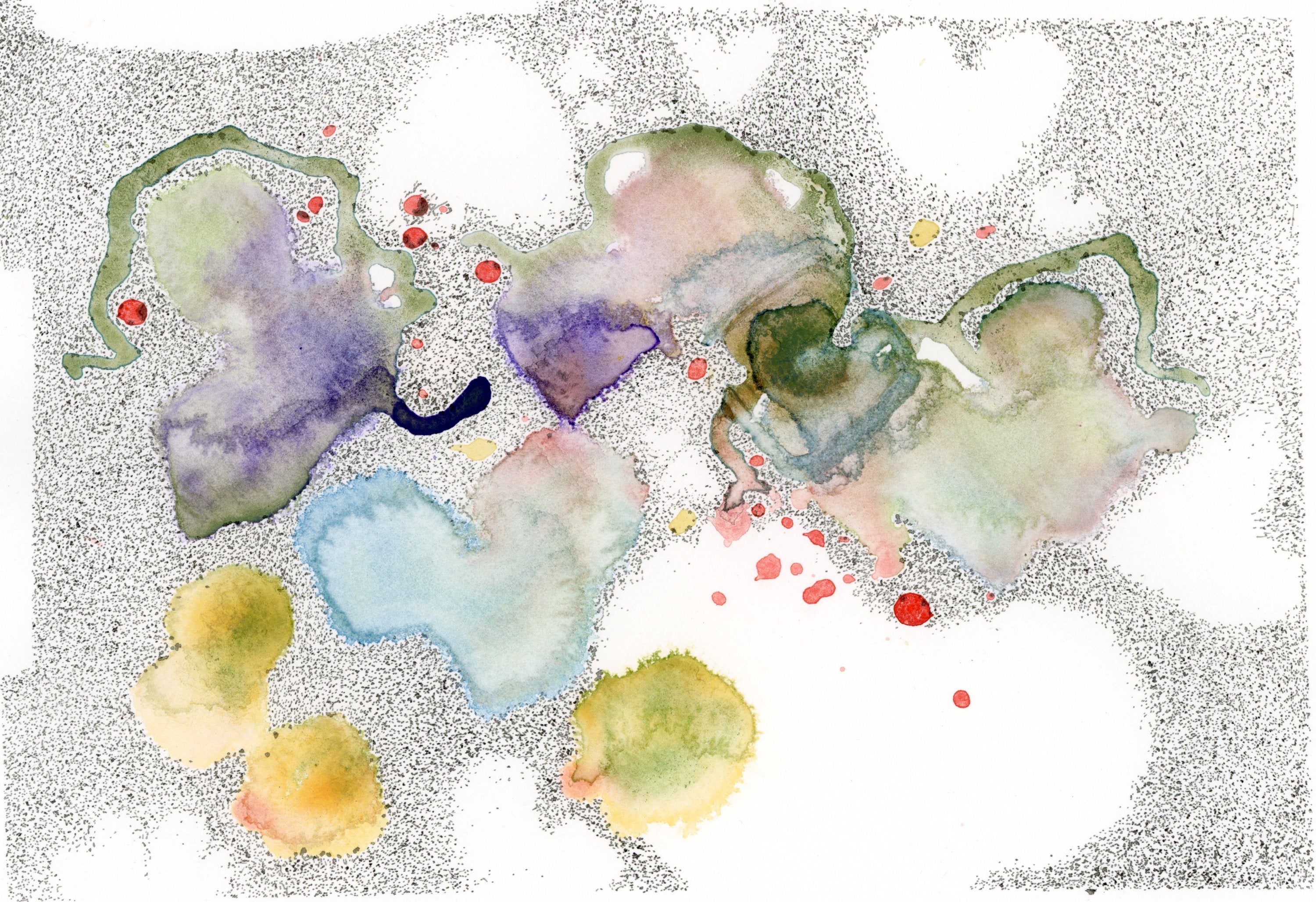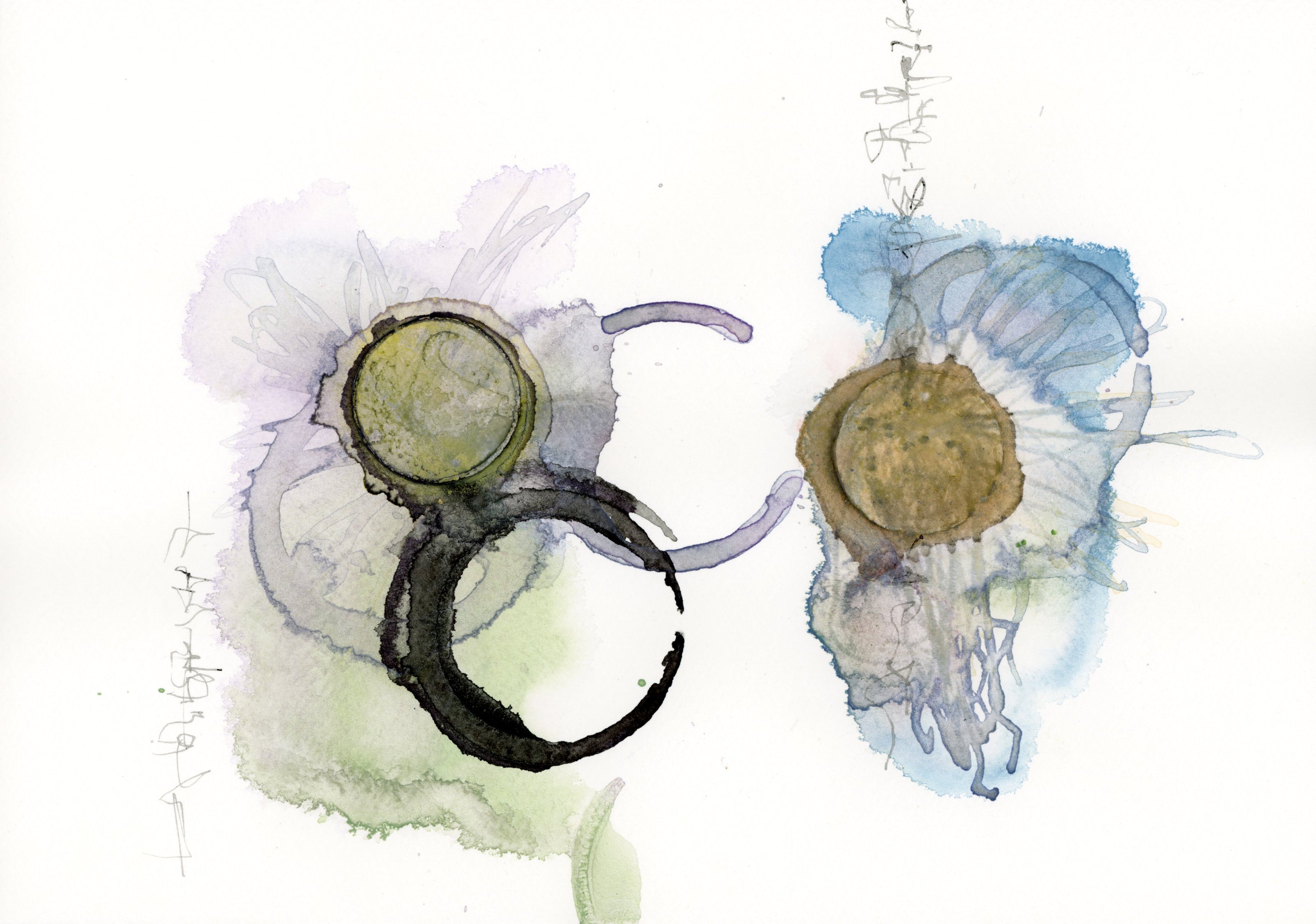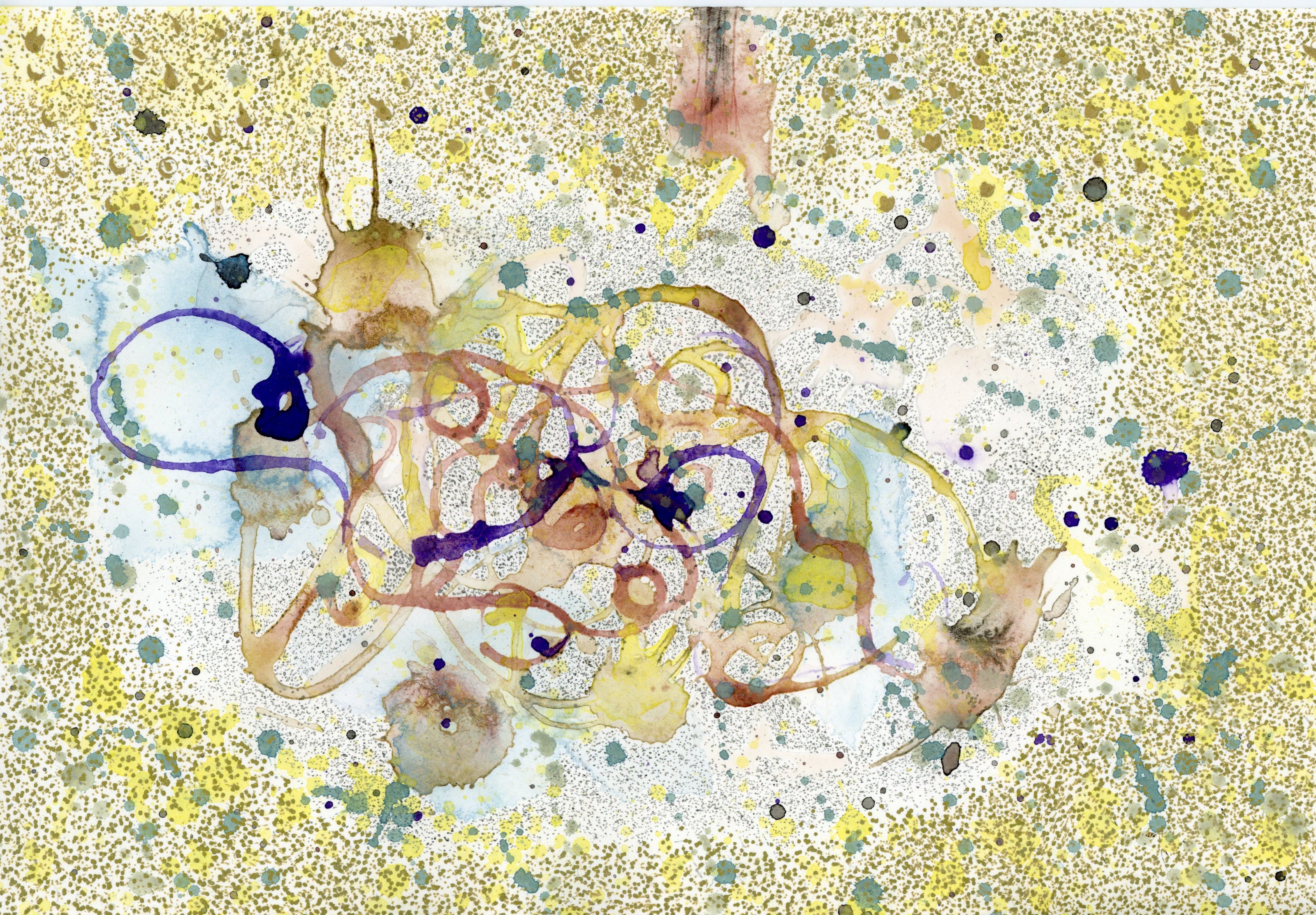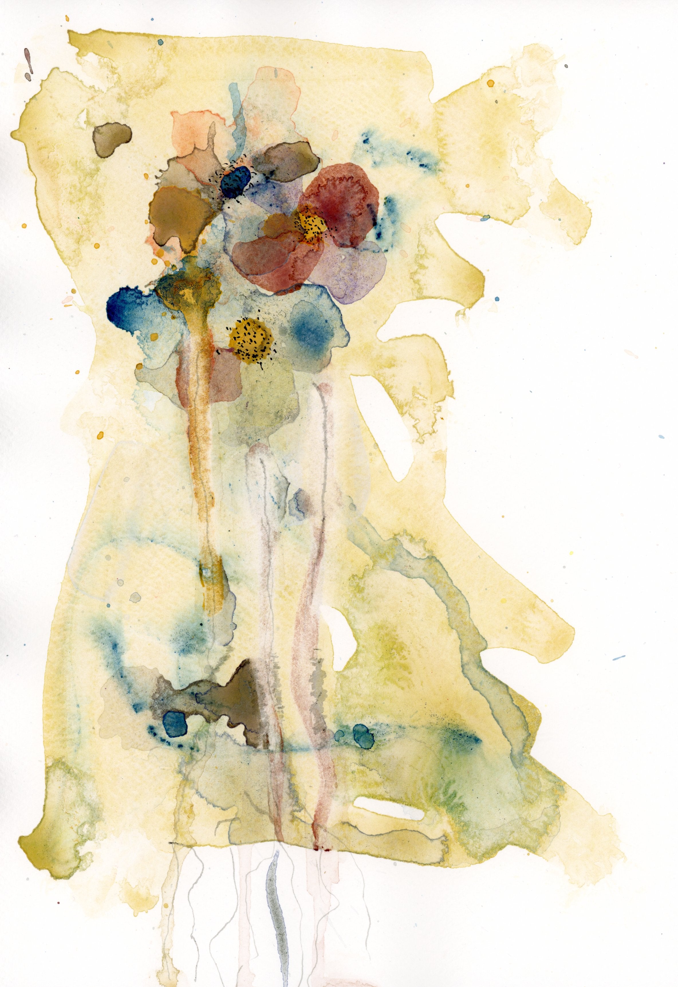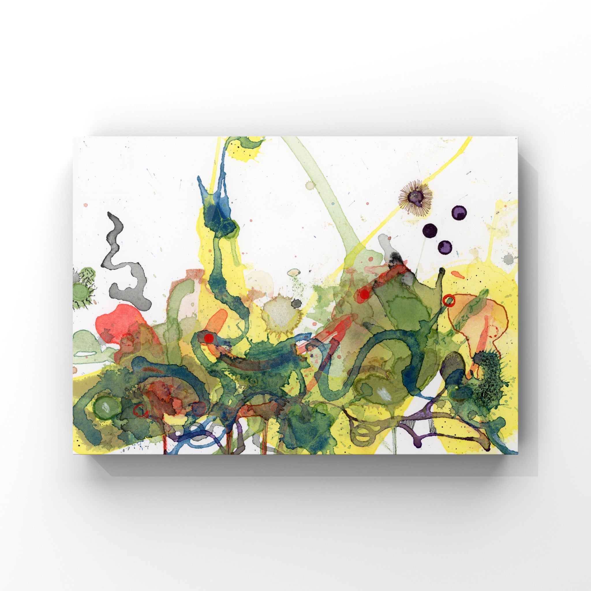 Astral Flowers 110 x 15 cm GC D2 This postcard size looks a bit elongated in this scanned image but it is in fact more compact in real life. It is postcard size watercolour paper art.