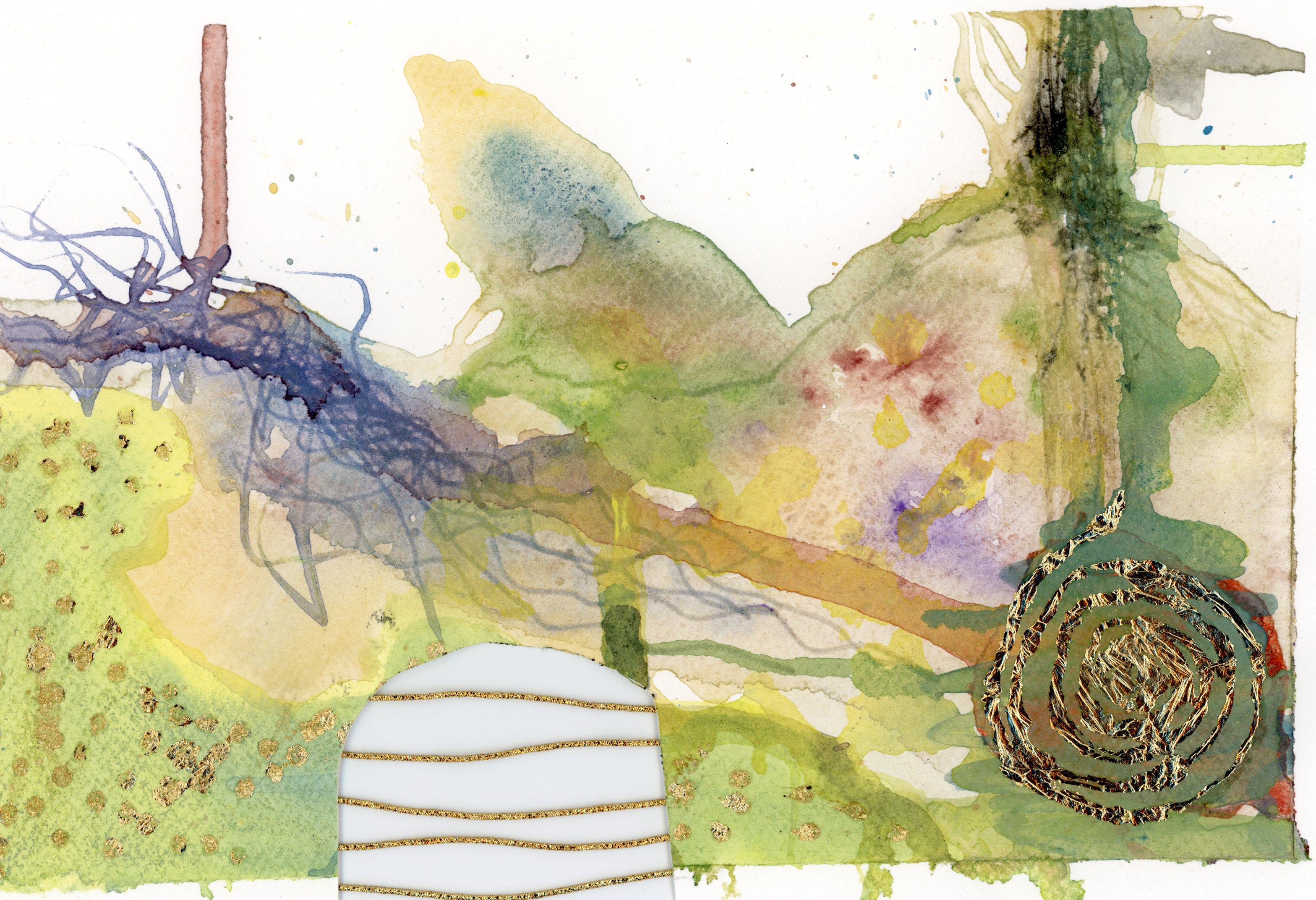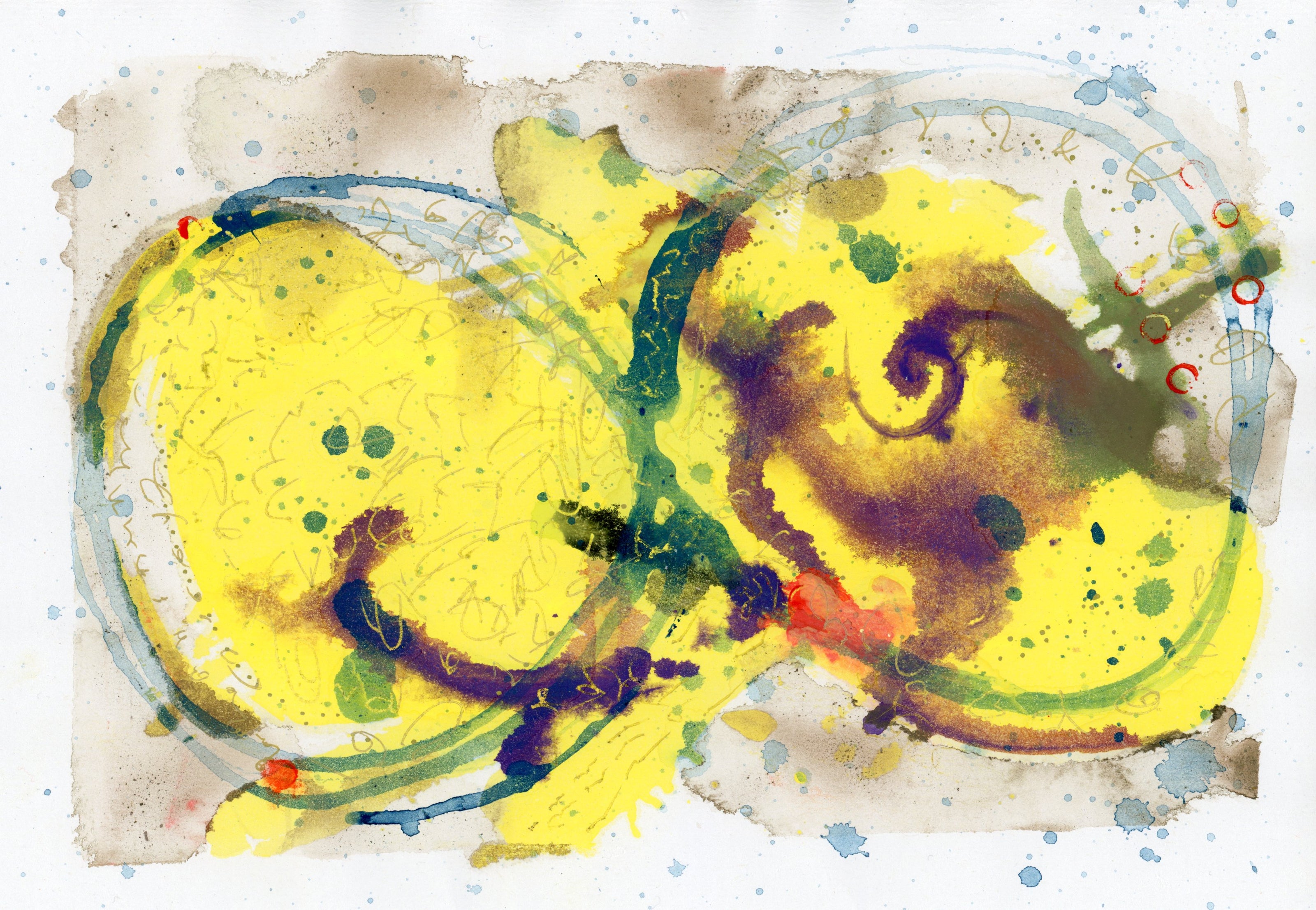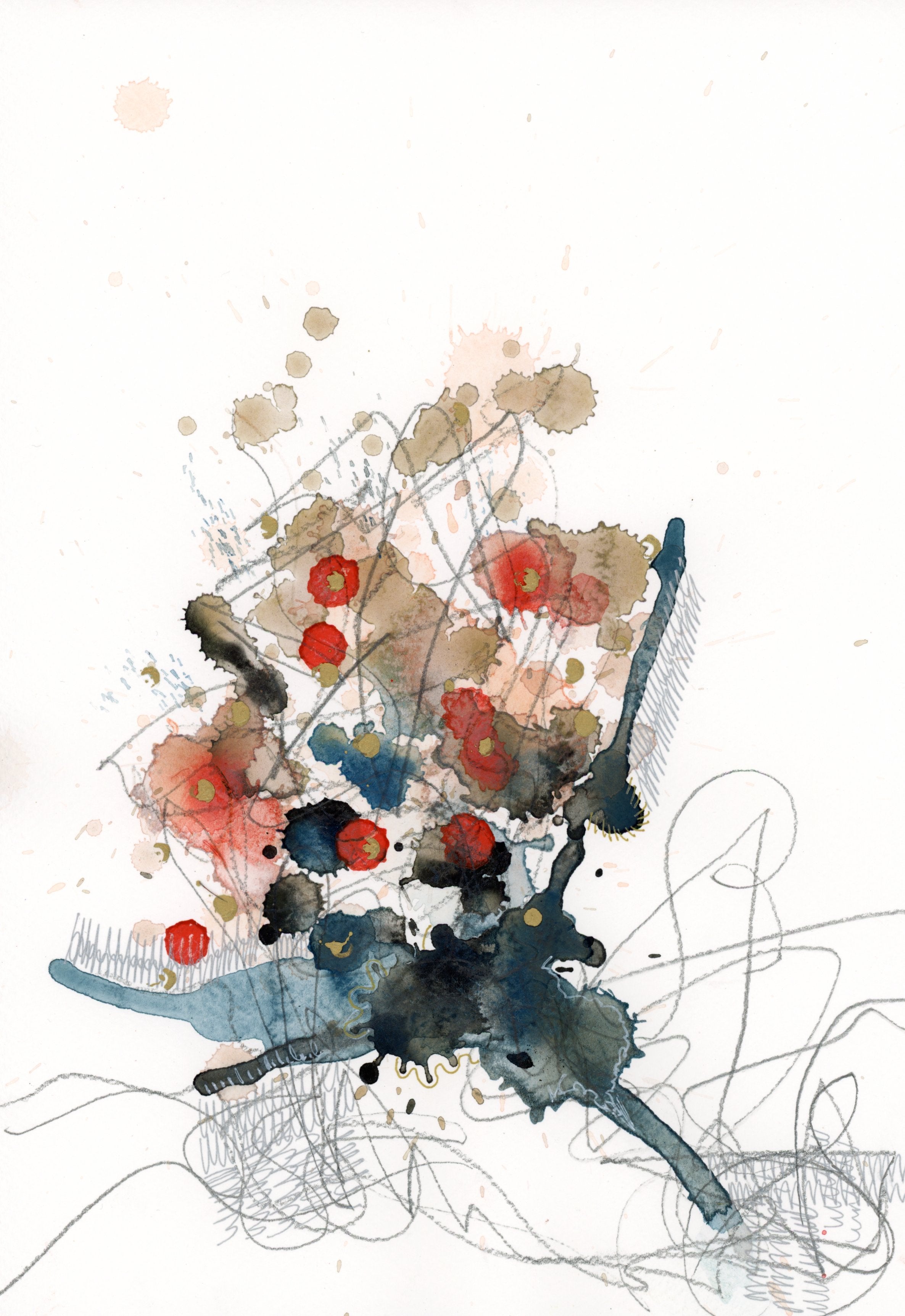 The Galactic Collection (GC from 2021) is primarily watercolour art, gouache and some mixed media use of pens, gold leaf and calligraphy ink.