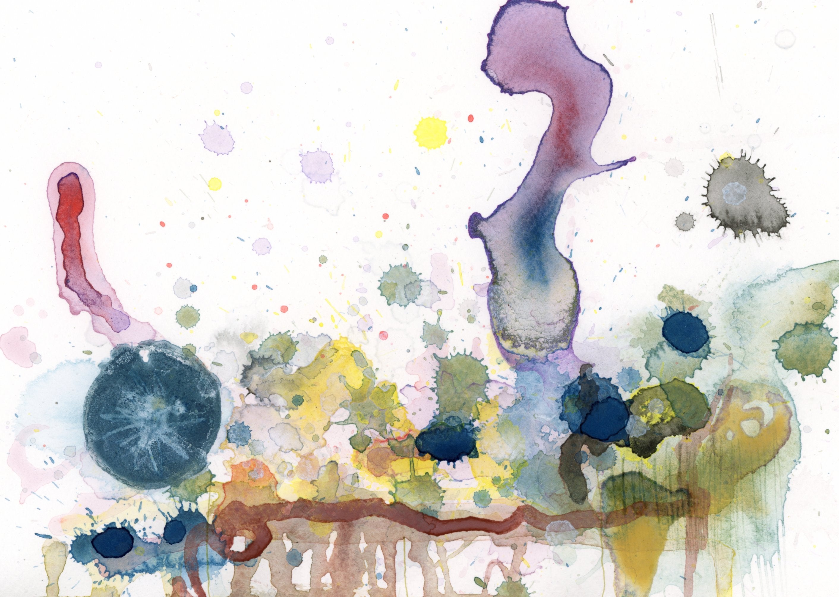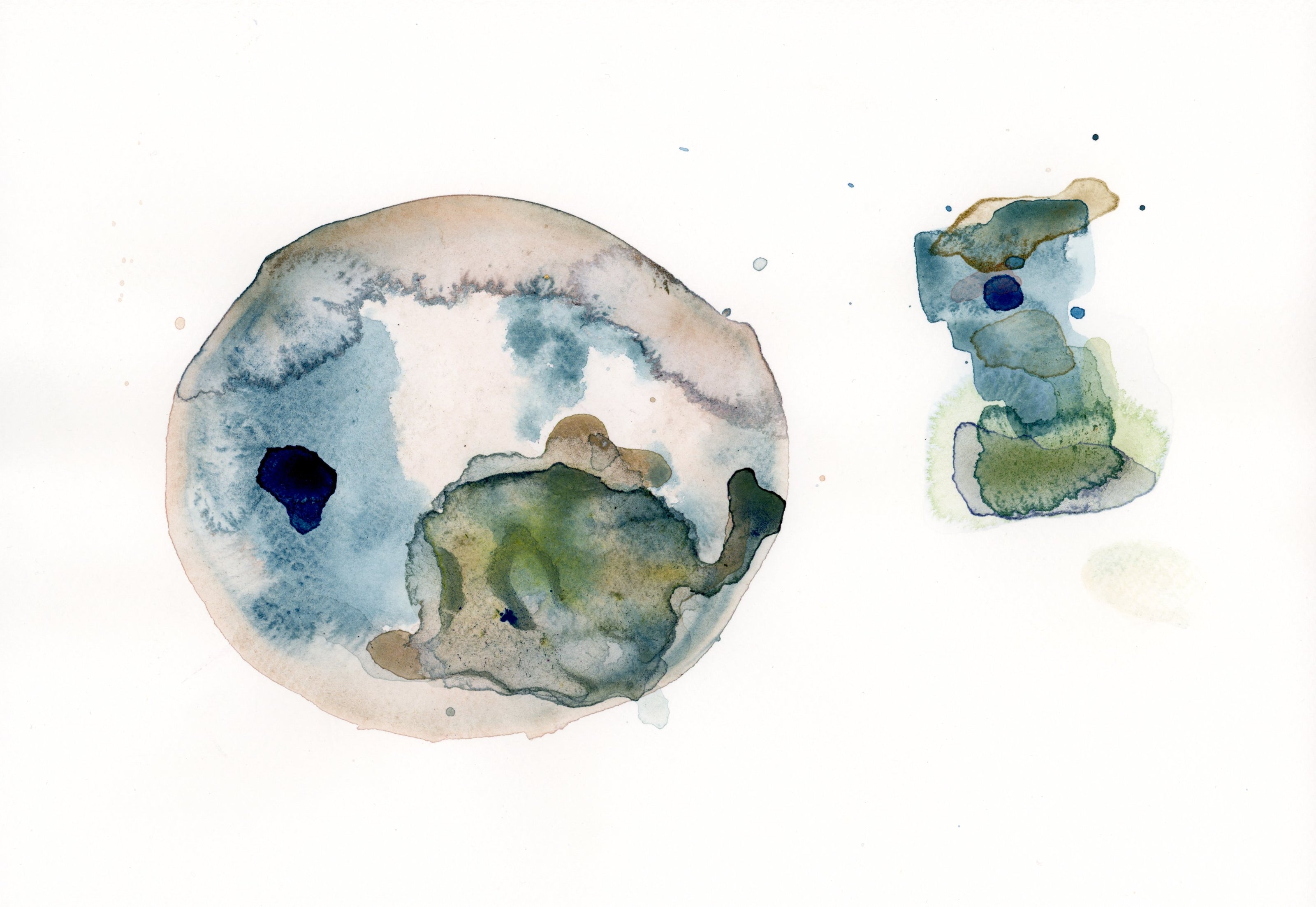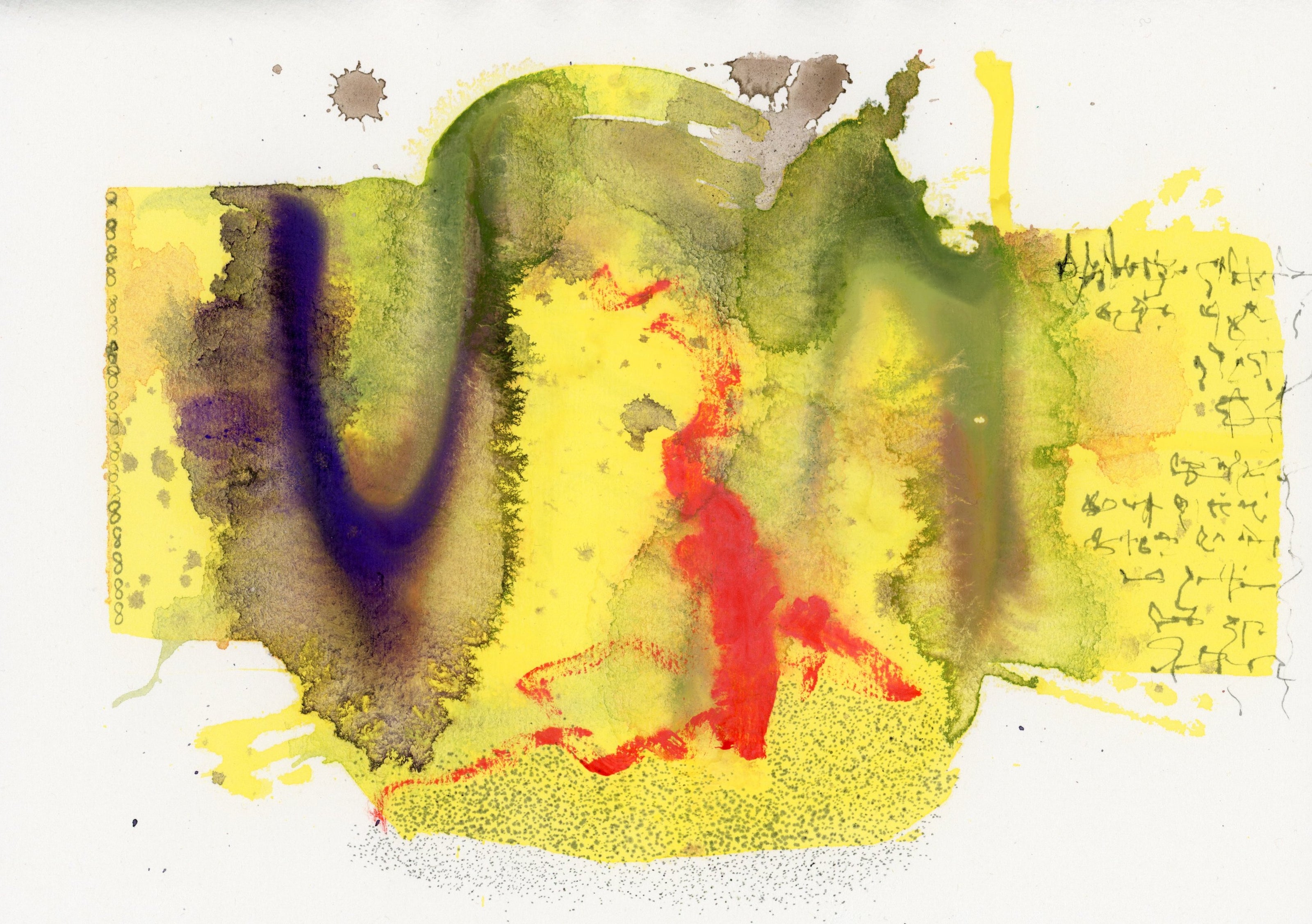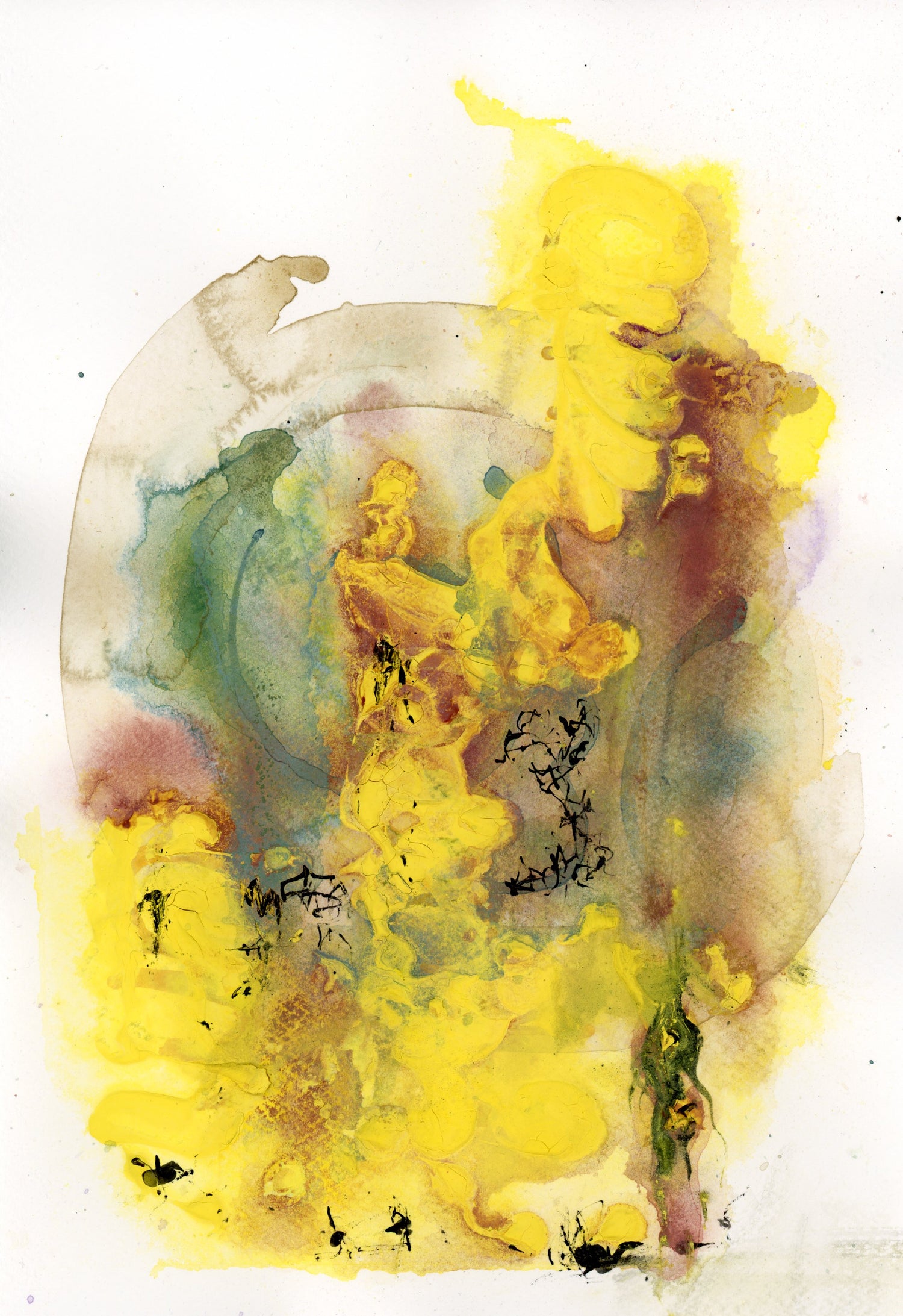 The Galactic Collection (GC from 2021) is primarily watercolour art, gouache and some mixed media use of pens, gold leaf and calligraphy ink.