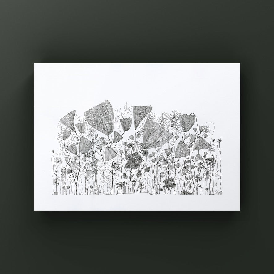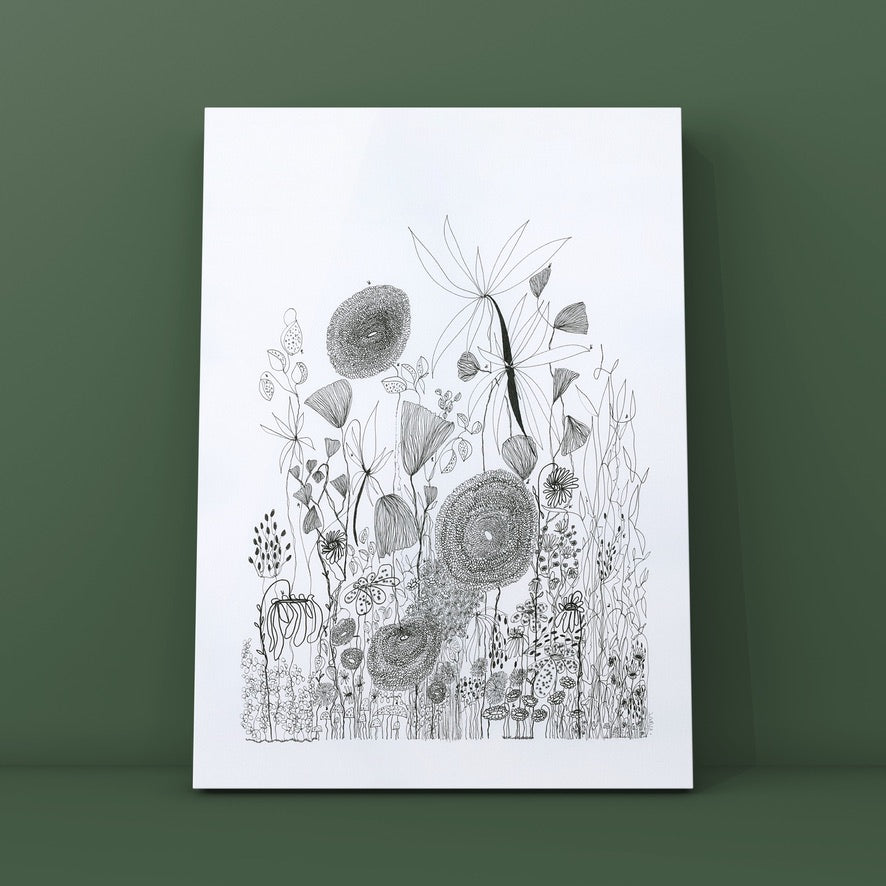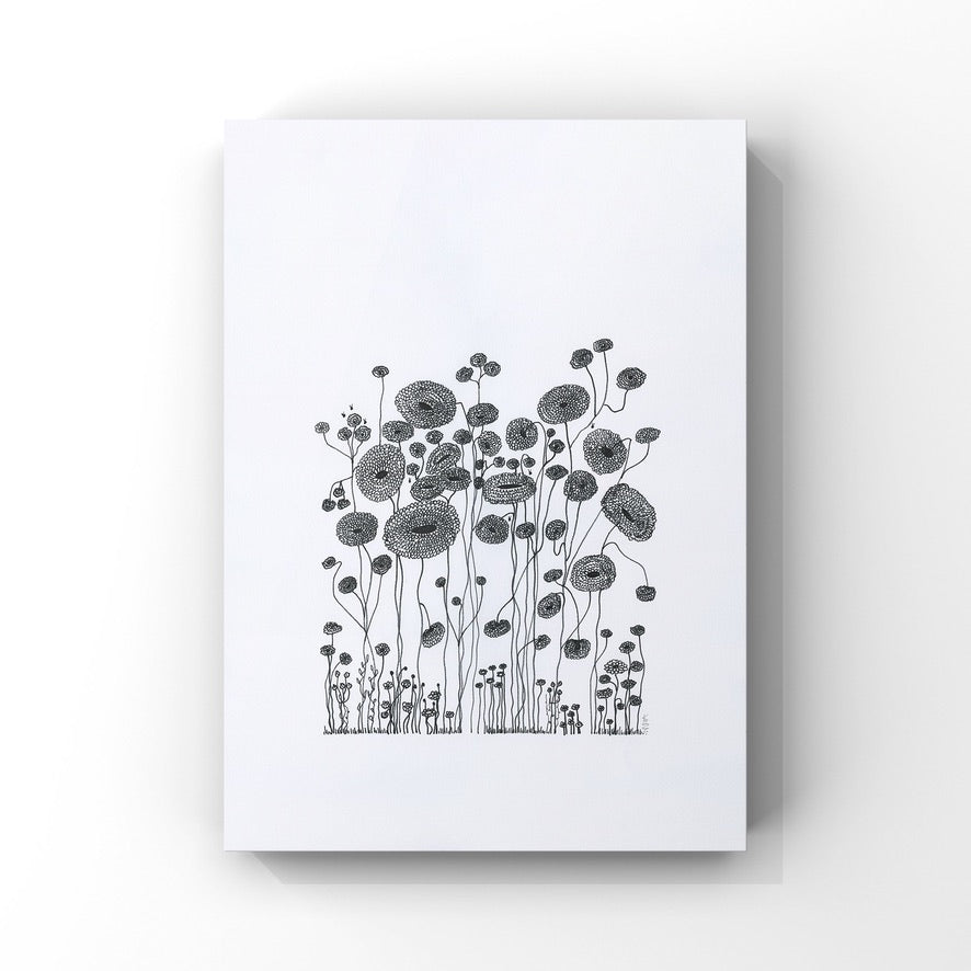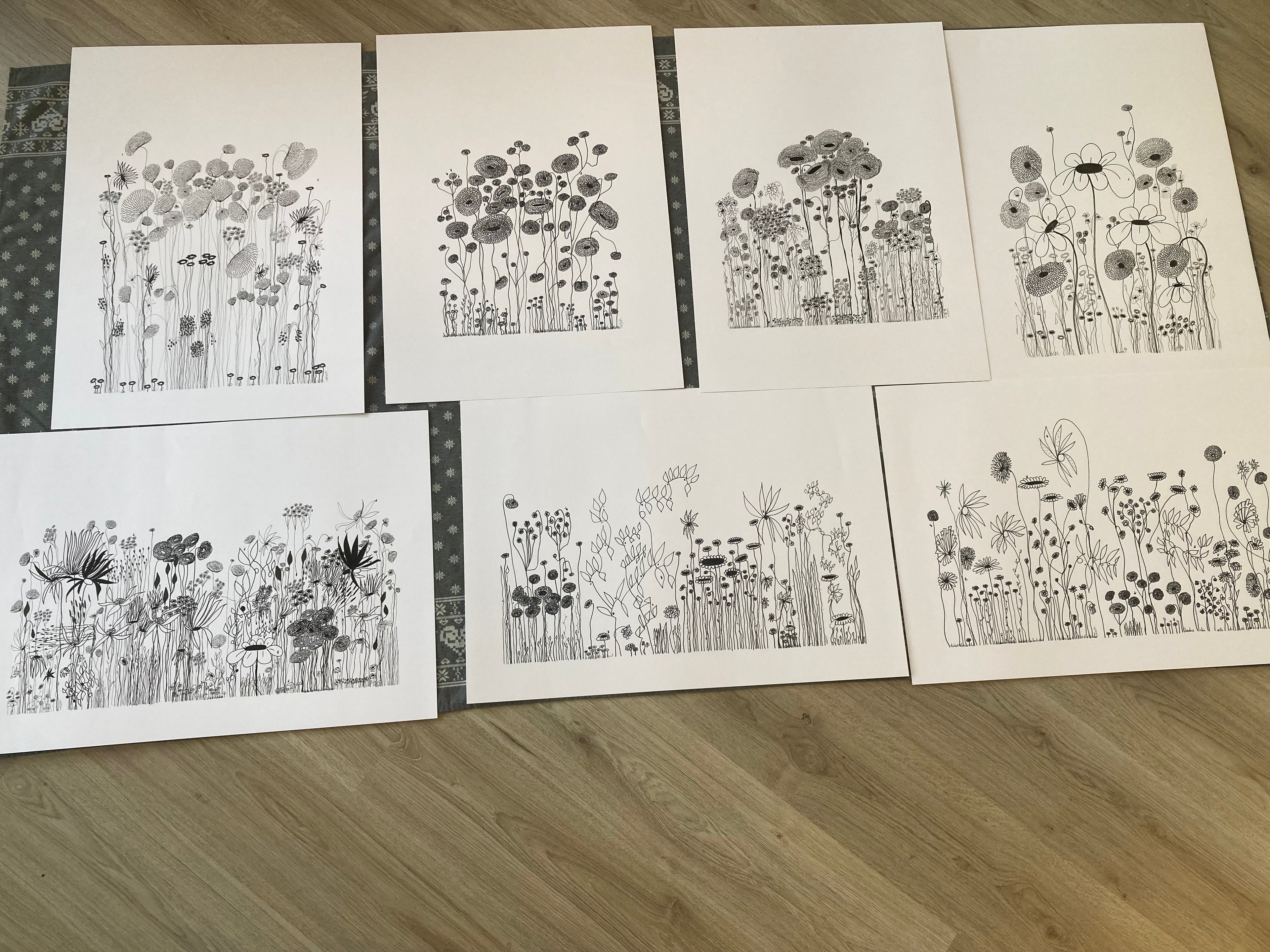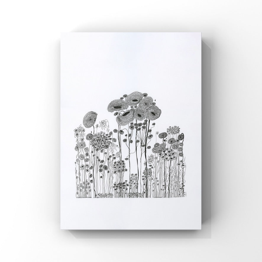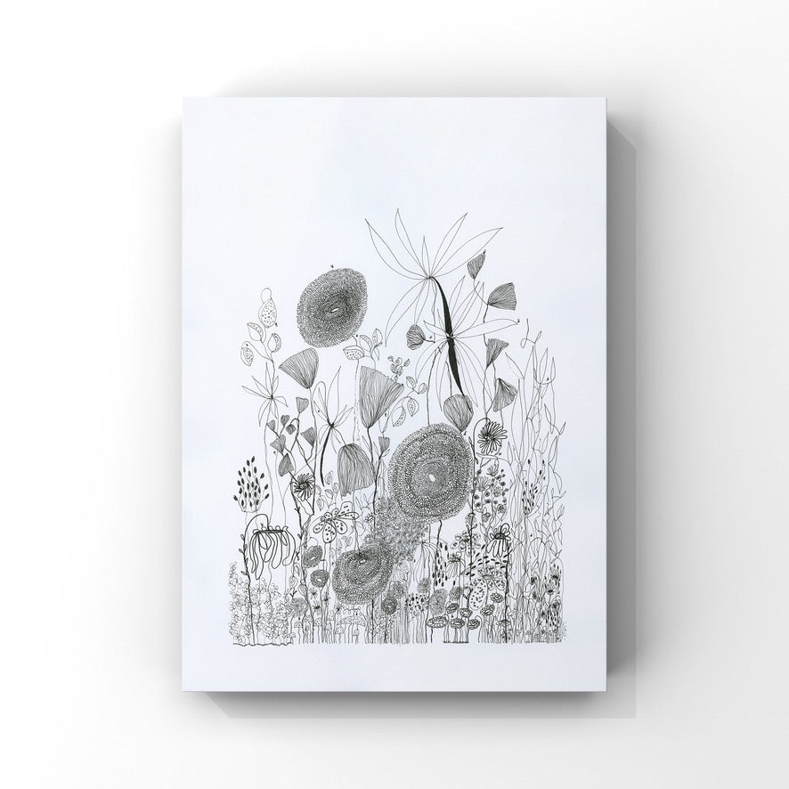 On a day that I was tired and grumpy - I went to bed early and picked up my art journal and started to doodle different designs. A garden started to appear in the pages, full of strangely familiar yet oddly unrecognisable flowers and plants that haphazardly existed together in many phases of their lifecycle.