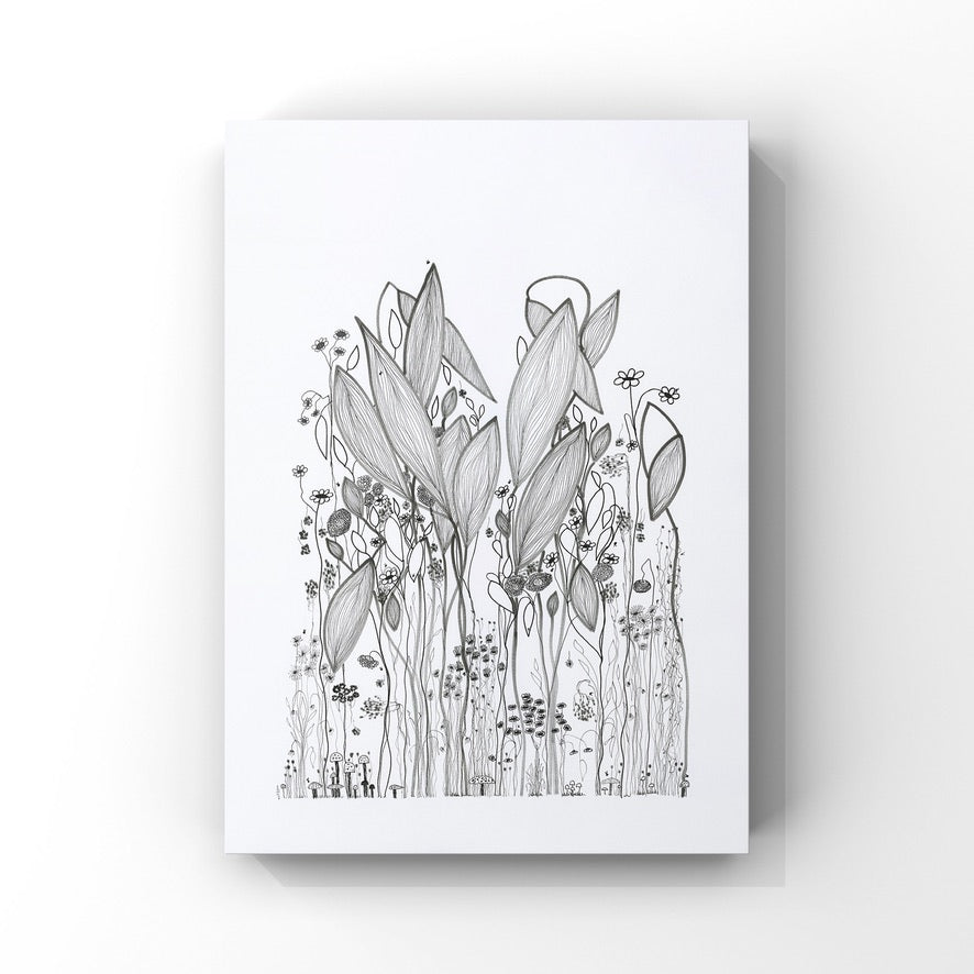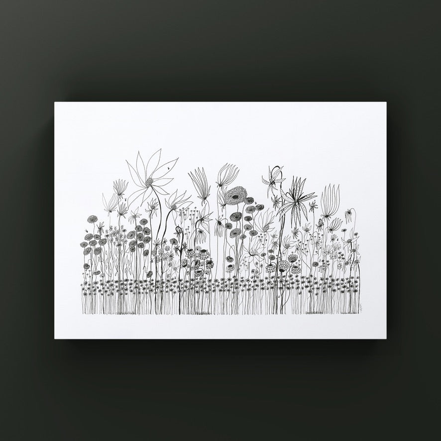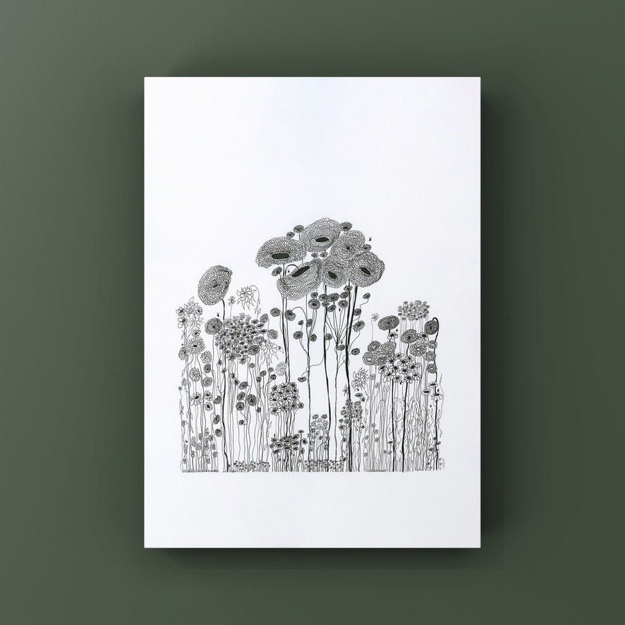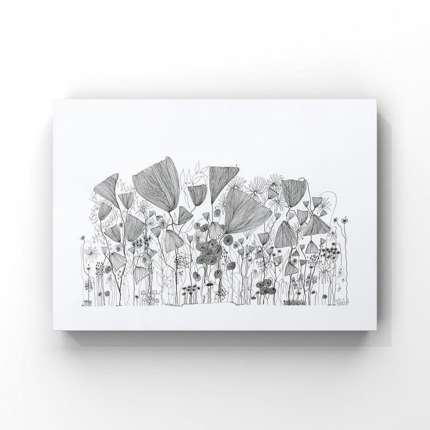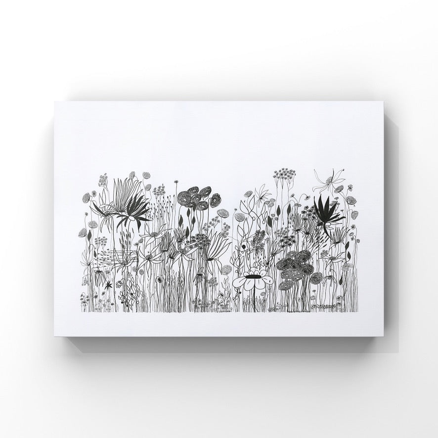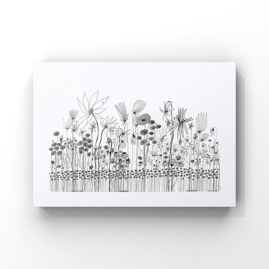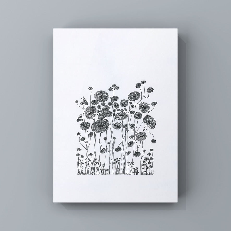 On a day that I was tired and grumpy - I went to bed early and picked up my art journal and started to doodle different designs. A garden started to appear in the pages, full of strangely familiar yet oddly unrecognisable flowers and plants that haphazardly existed together in many phases of their lifecycle.