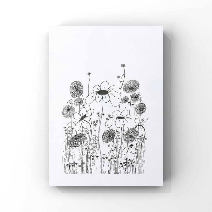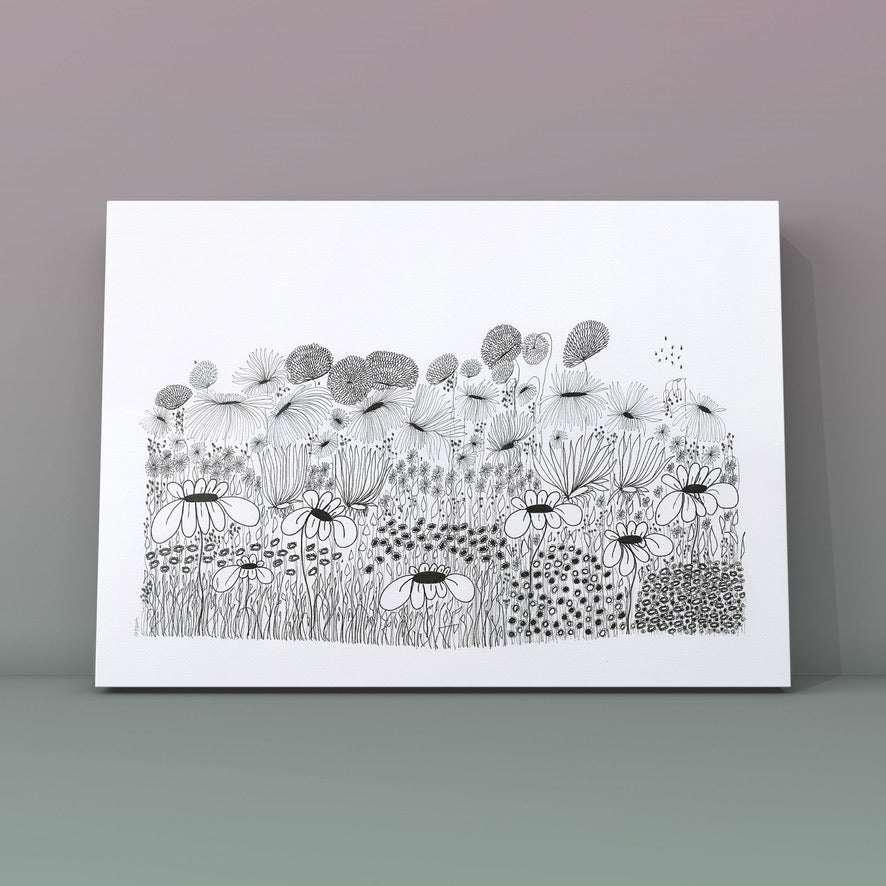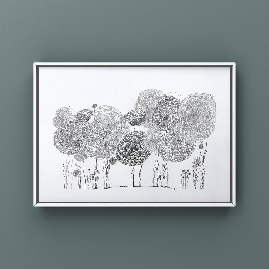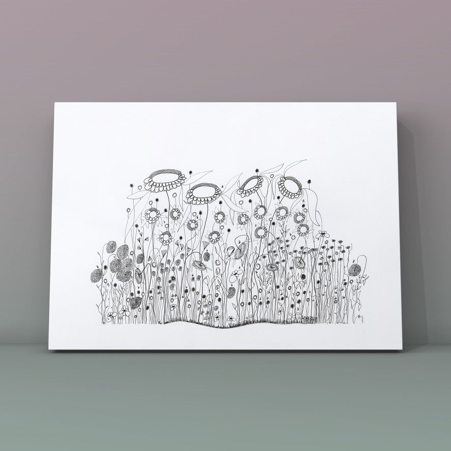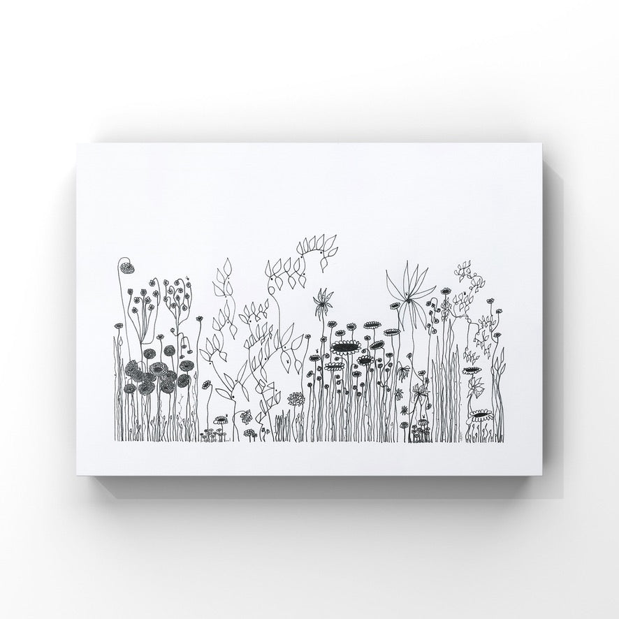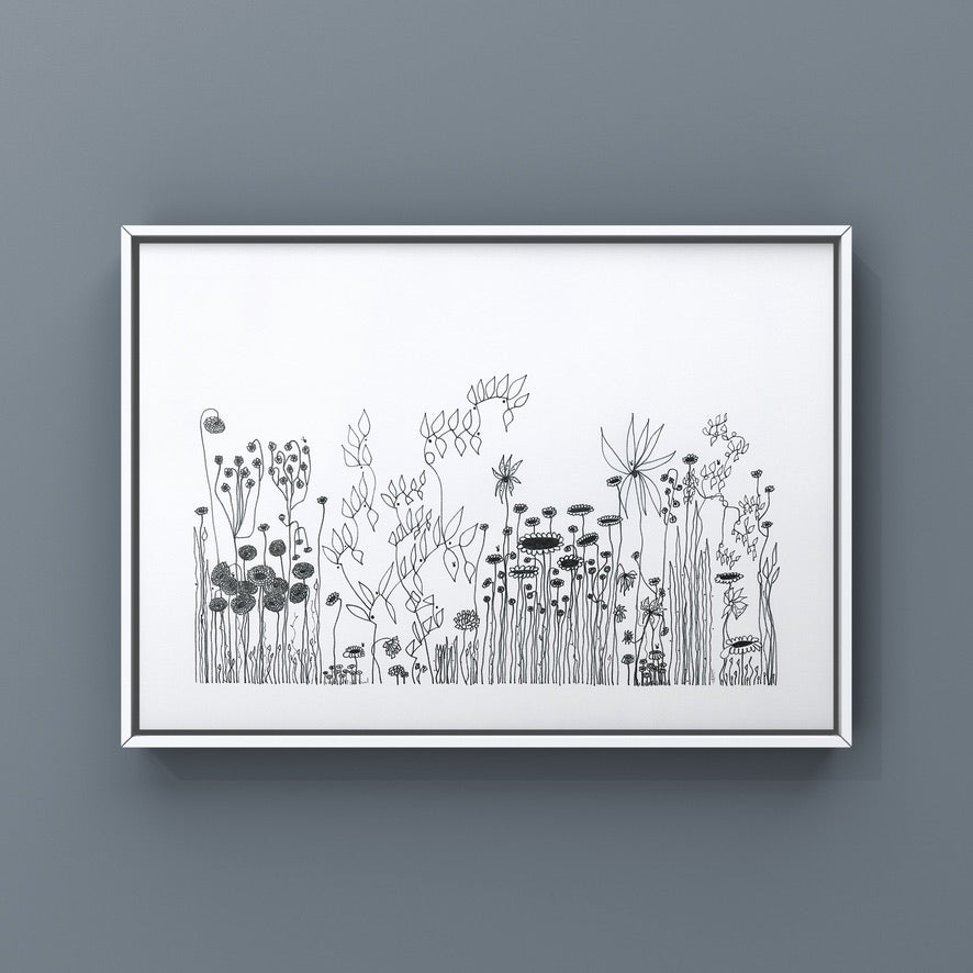 On a day that I was tired and grumpy - I went to bed early and picked up my art journal and started to doodle different designs. A garden started to appear in the pages, full of strangely familiar yet oddly unrecognisable flowers and plants that haphazardly existed together in many phases of their lifecycle.