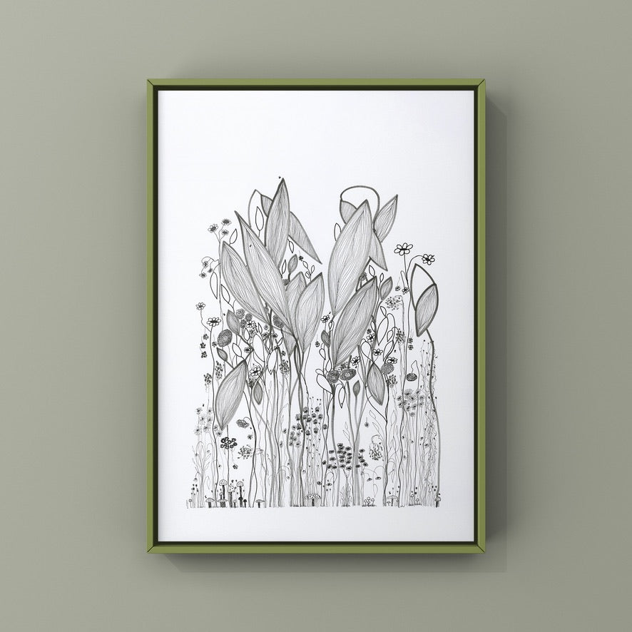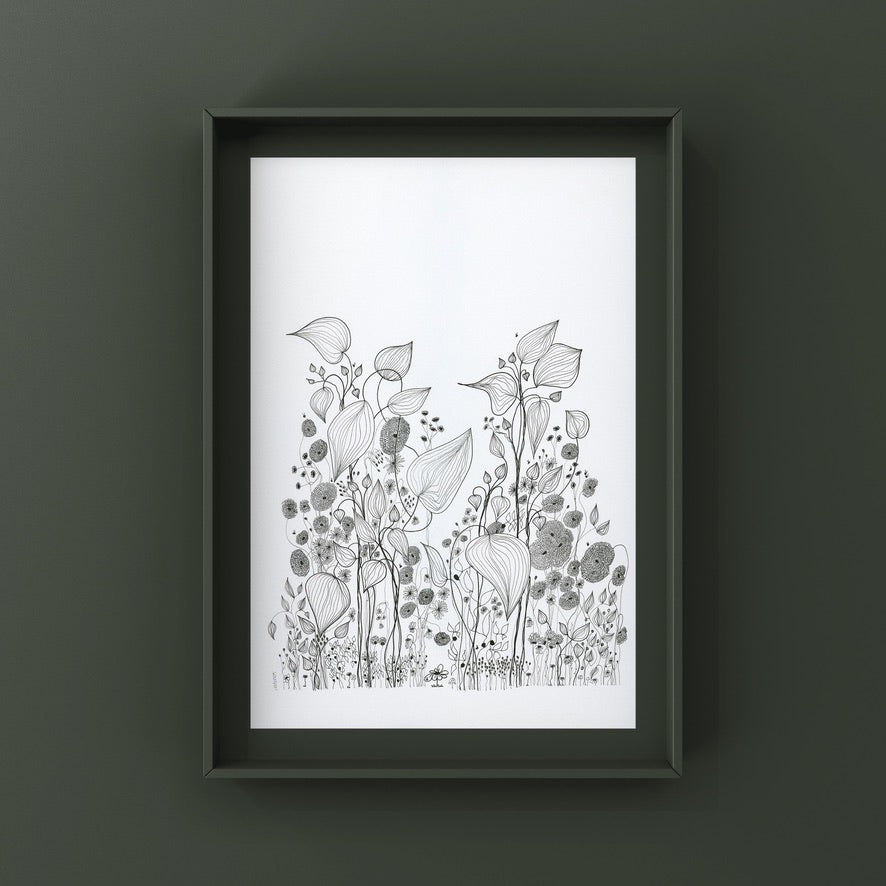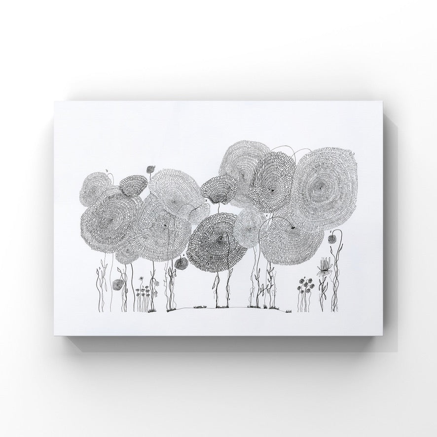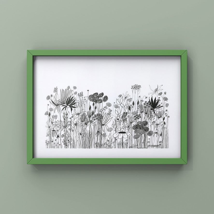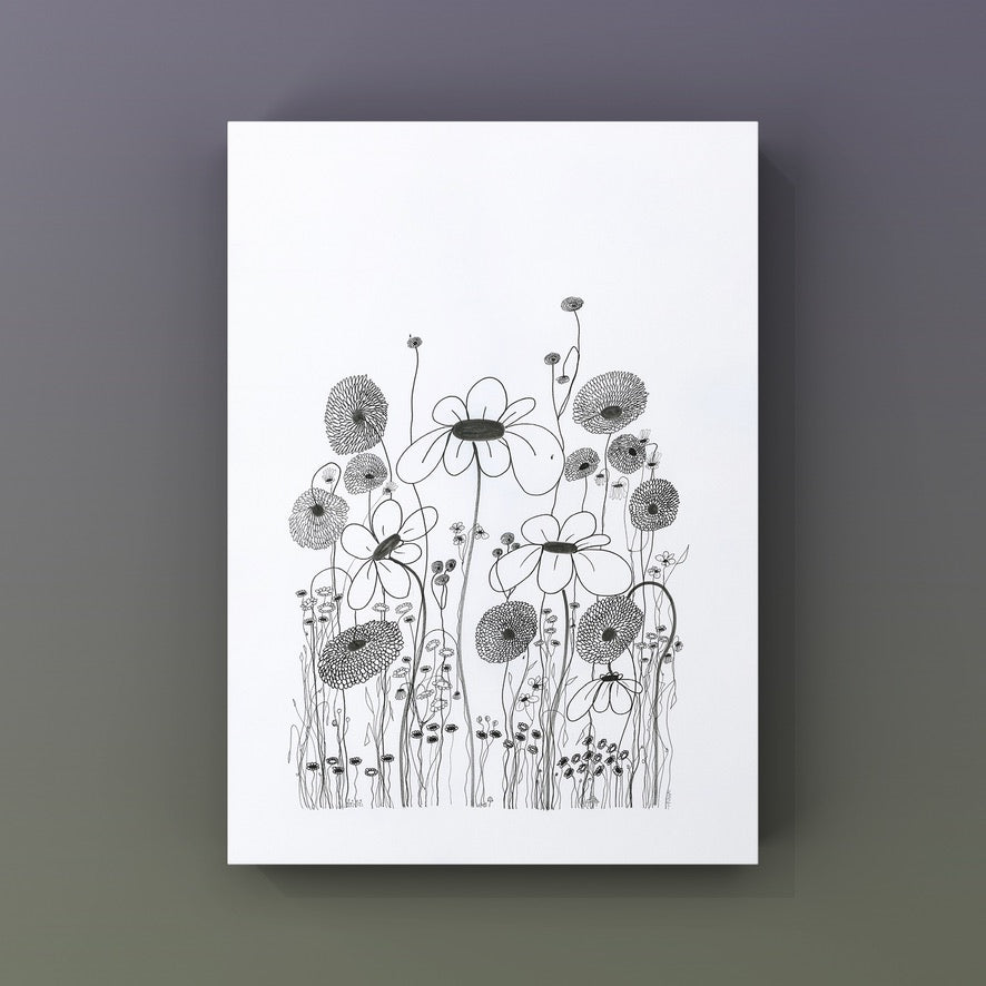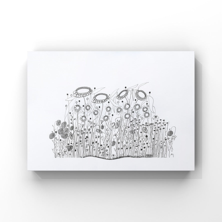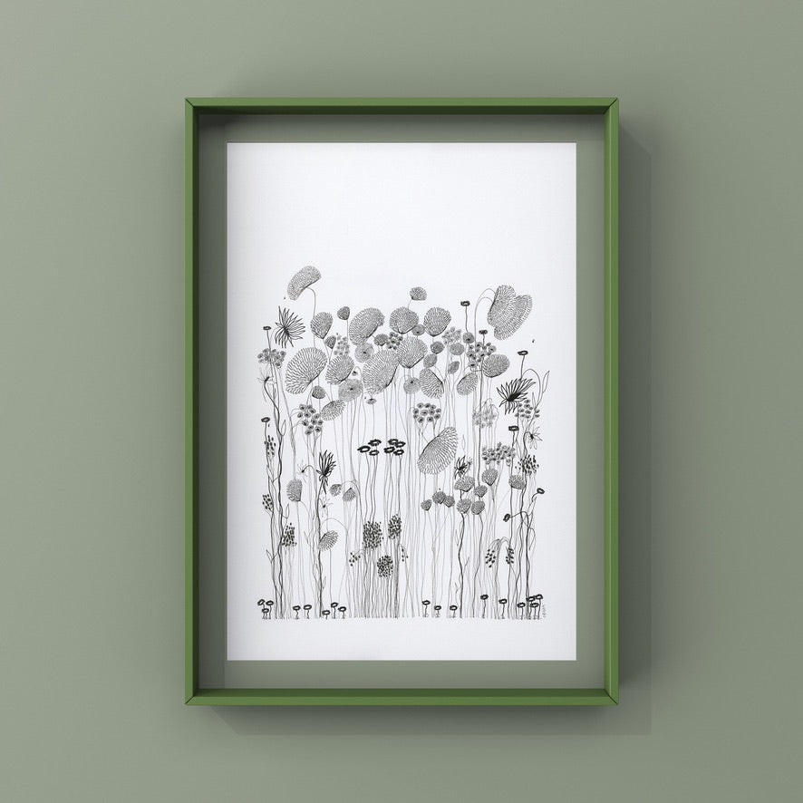 On a day that I was tired and grumpy - I went to bed early and picked up my art journal and started to doodle different designs. A garden started to appear in the pages, full of strangely familiar yet oddly unrecognisable flowers and plants that haphazardly existed together in many phases of their lifecycle.