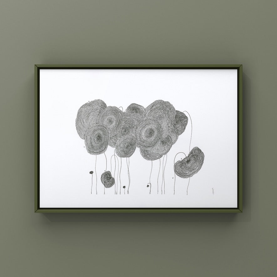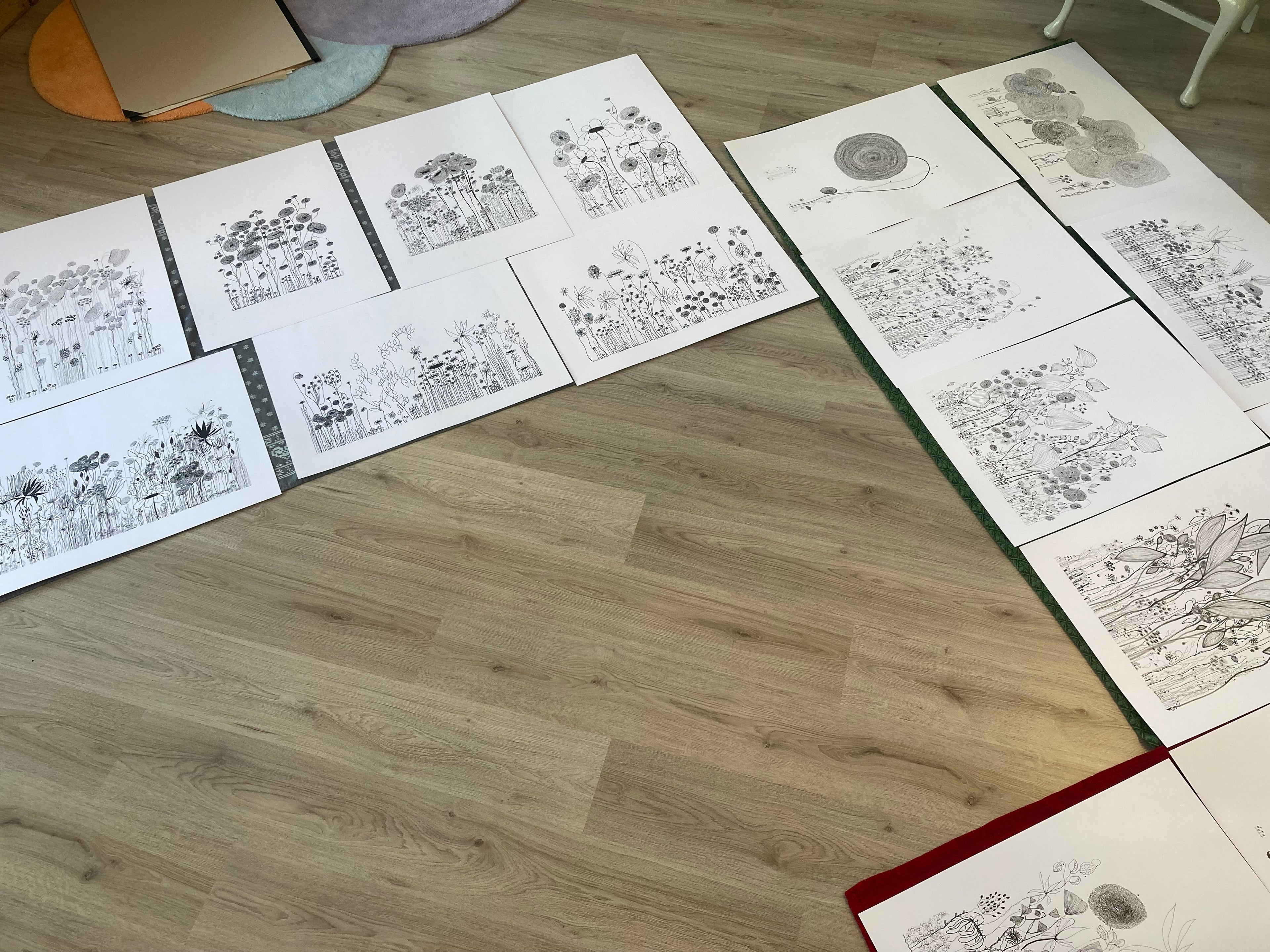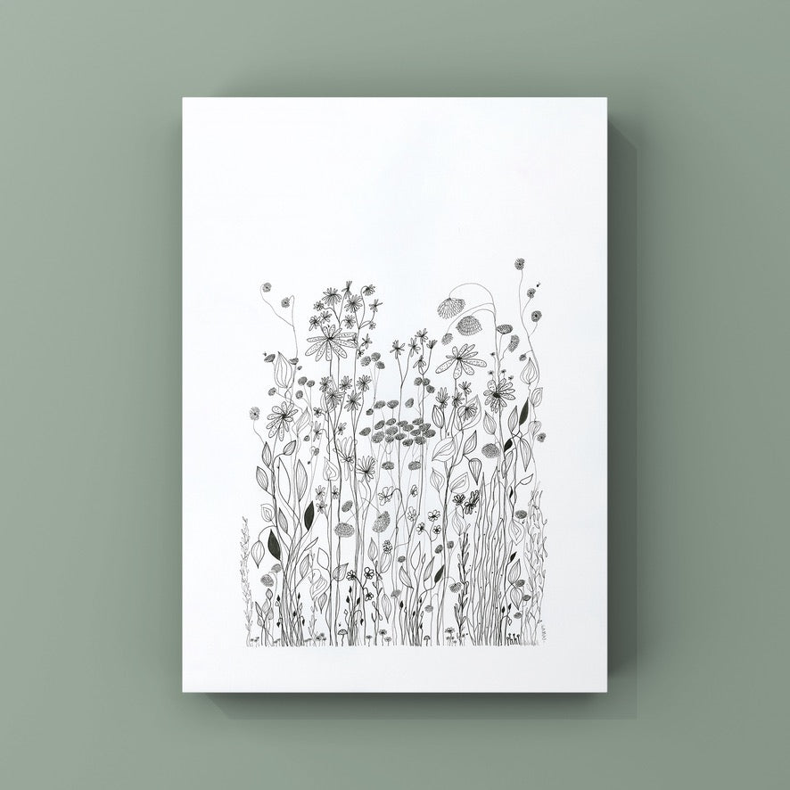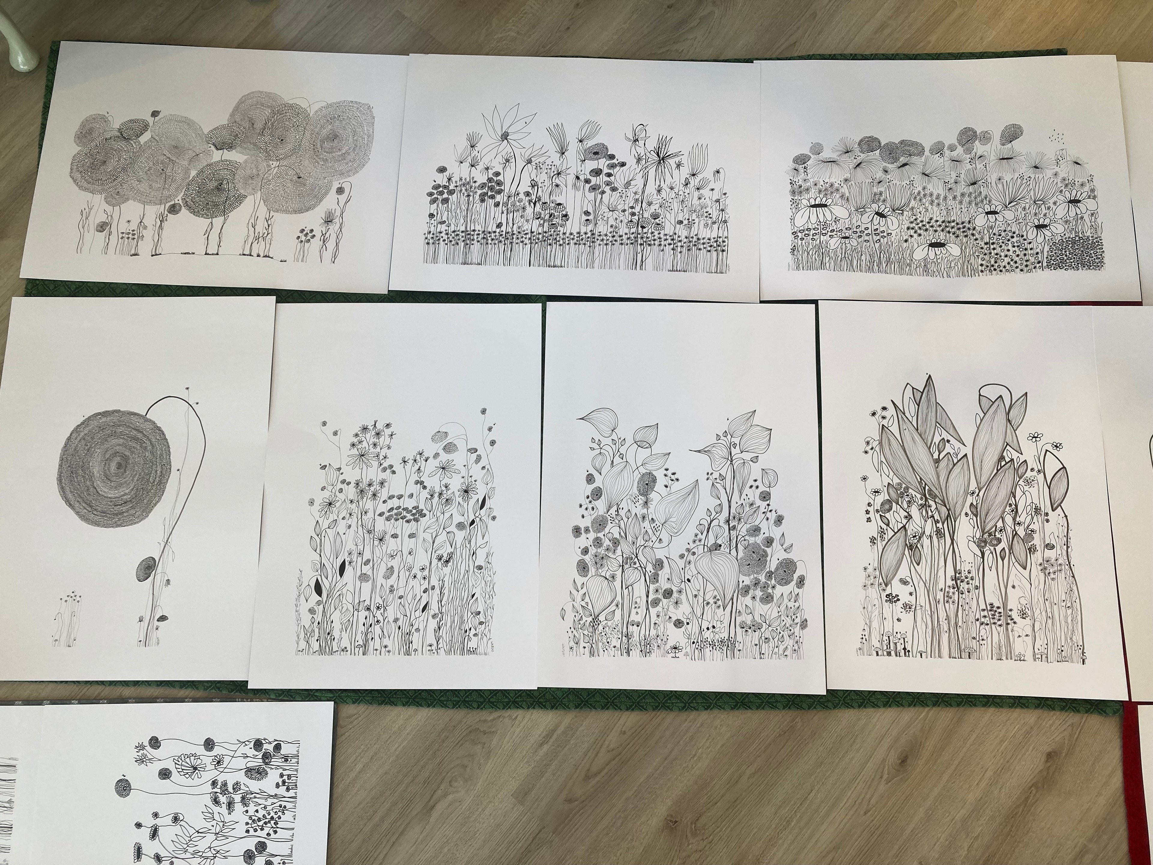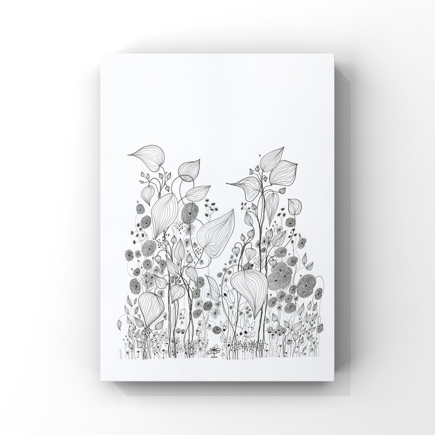 On a day that I was tired and grumpy - I went to bed early and picked up my art journal and started to doodle different designs. A garden started to appear in the pages, full of strangely familiar yet oddly unrecognisable flowers and plants that haphazardly existed together in many phases of their lifecycle.