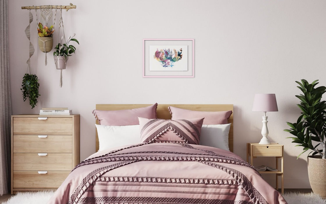 It is best to frame the art work in UV protection frame as soon as possible for preservation of colour and keep it out of direct sunlight.