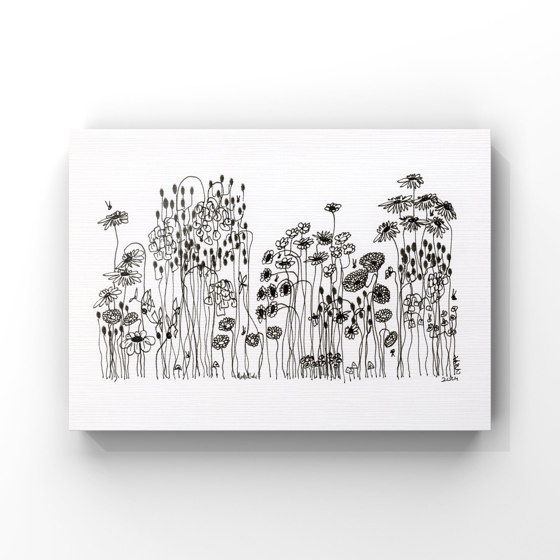On a day that I was tired and grumpy - I went to bed early and picked up my art journal and started to doodle different designs. A garden started to appear in the pages, full of strangely familiar yet oddly unrecognisable flowers and plants that haphazardly existed together in many phases of their lifecycle.